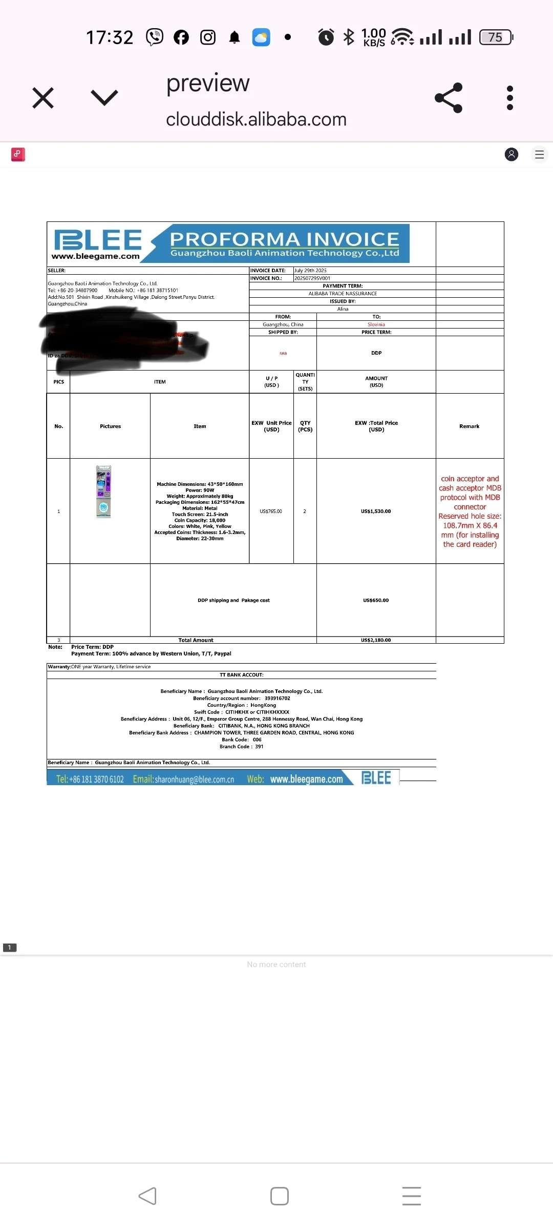 Very disappointed with this purchase. The machine does not match the specifications on the proforma invoice. Seller promised MDB protocol and an MDB connector for POS, but the delivered product has no MDB port, no compatible wiring and no way to connect a POS terminal. We also received no user manual, no technical documentation and no product labels. Support was very poor – replies were incomplete and did not solve any issue. Delivery was also problematic: Alibaba showed the item as delivered although we had not received it, and no valid tracking number was provided. Because of this, the dispute period expired before we could react. Overall, the product does not meet the promised features and the seller did not provide proper assistance. I cannot recommend this supplier.